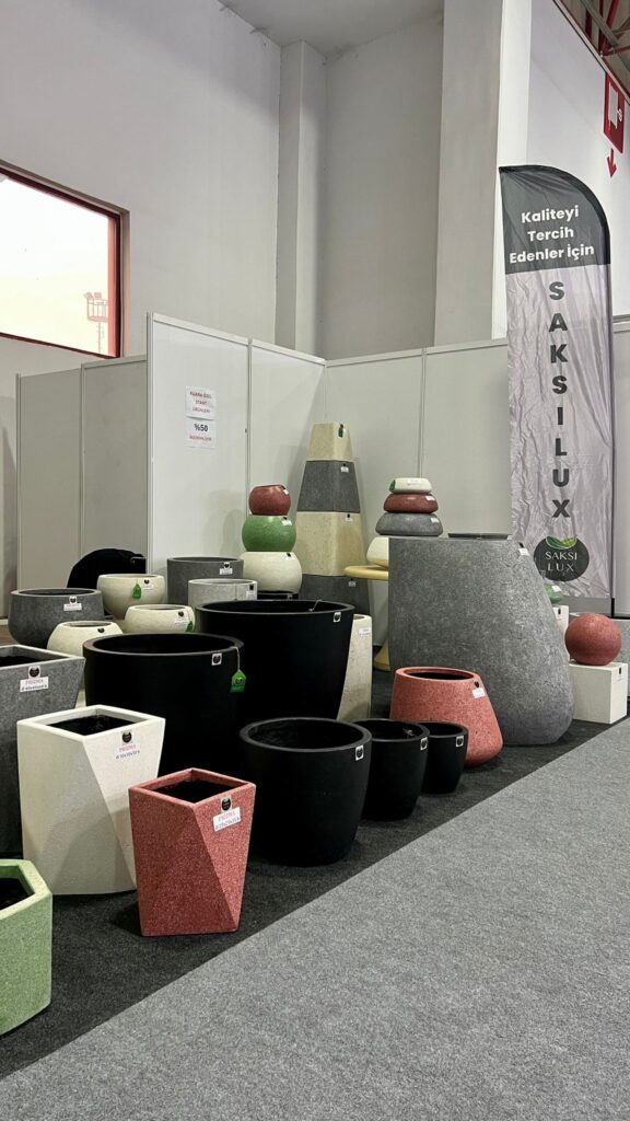Saksılux, hafif beton saksı, fiberstone saksı, peyzaj fuarı, Peyzaj İstanbul Fuarı, modern saksı modelleri, dış mekân saksı, iç mekân dekorasyon, peyzaj tasarımı, beton saksı üreticisi.