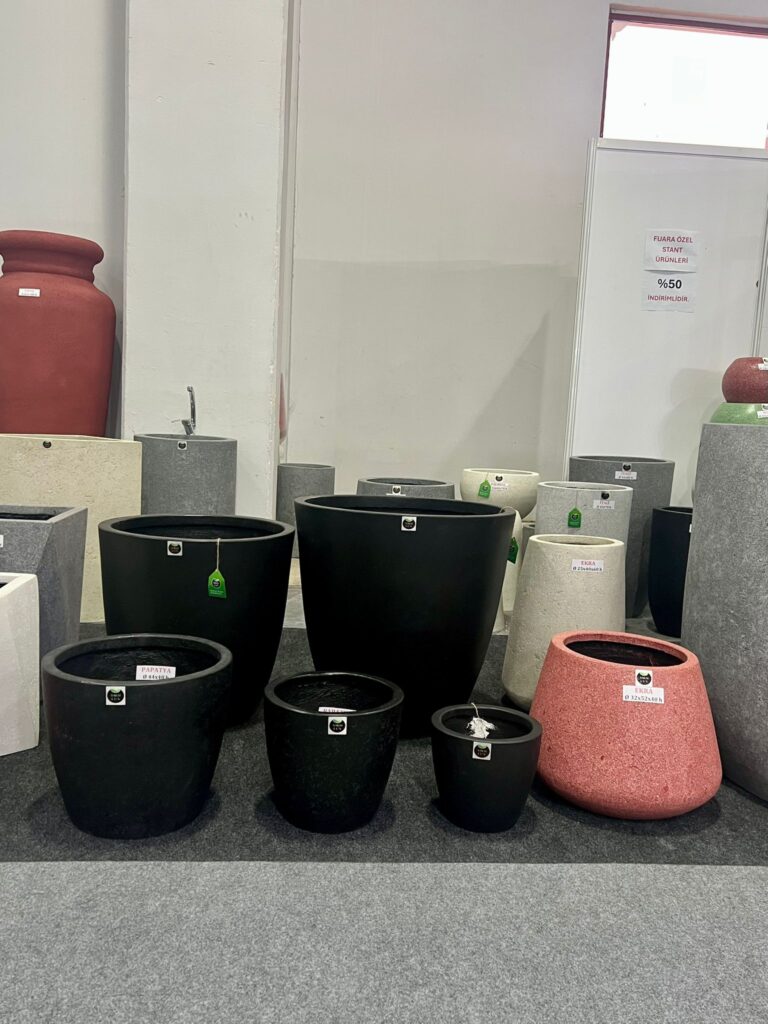 Standımızda sergilediğimiz modern ve zarif tasarımlı saksılar, fiberstone (hafif beton) teknolojimizin sağladığı üstün dayanıklılık sayesinde hem iç hem de dış mekânlarda uzun ömürlü kullanım sunuyor. Doğal taş dokusuyla mekânlara estetik bir değer katan ürünlerimiz, peyzaj mimarları, iç mimarlar, oteller, alışveriş merkezleri ve villa projeleri tarafından yoğun ilgi gördü.